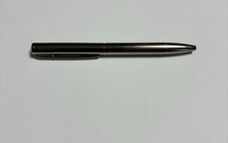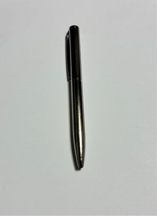 Penna a sfera, in metallo cromato, di dimensioni ridotte, ideale per essere portata ovunque. Lunghezza 10 cm. Design elegante e moderno. Ricarica di inchiostro nero inclusa. Come nuova.