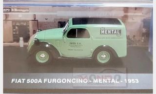 Modellino del Fiat 500A Furgoncino del 1953, con livrea Mental. Verde con scritte nere - Veicolo pubblicitario d'epoca. - Dettagli fedeli all'originale.