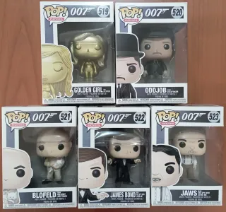 Lotto di 5 Funko Pop della serie 007 James Bond. - Golden Girl (n. 519) - Oddjob (n. 520) - Blofeld (n. 521) - James Bond (n. 522) - Jaws (n. 523) Ottime condizioni. Come nuovi