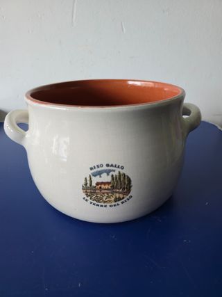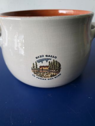Come da titolo vendo Pentola Smaltata in Terracotta Riso Gallo "Le terre del Riso". Ottime condizioni. Perfetta per la tua cucina o arredamenti. Misure: altezza circa 14cm, diametro circa 19cm.