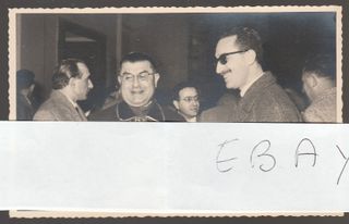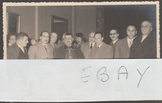 Monsignor ENRICO NICODEMO A Bari, dopo il breve periodo alla guida della diocesi calabrese di Mileto, fu chiamato ad amministrare il significativo e delicato passaggio della vita ecclesiale dalle antiche forme di religiosità tridentina alla Pastoralità rinnovata del Vaticano II. Enrico Nicodemo, arcivescovo di Bari dal 1952 al 1973 n. 2 Foto misure 13,5 x 8,5 Fotografia d'epoca con Enrico Nicodemo. - Scatto in bianco e nero. - Ritratto di gruppo.
