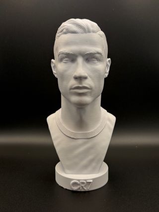 Busto stampato in 3D del calciatore Cristiano Ronaldo. - Altezza: 25 cm. - Base con scritta CR7.