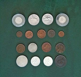Lotto misto di monete per collezionisti. Monete alcune ben conservate altre meno. Alcune sono state scalfite o graffiate, non sto a fare vedere tutte le monete, le vendo ad un prezzo basso anche per questo, le etichette come discrete condizioni anche se alcune sono messe bene - Diverse dimensioni e metalli. - Alcune monete presentano disegni e iscrizioni visibili.