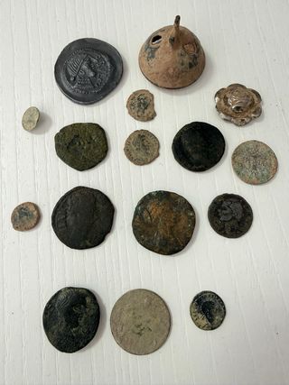 Set di monete antiche di diverse origini ed epoche. Pezzi da collezione con design vari. Ideale per gli appassionati di numismatica.
