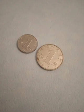 Set di due monete da 1 Yuan Cinese. - Una moneta con data 2007. - Un'altra moneta con data 2011.