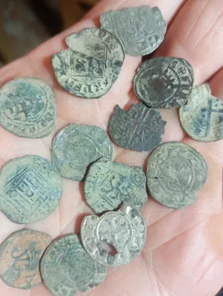 Set di antiche monete in vellon, con dettagli storici. Pezzi da collezione. Design vario.