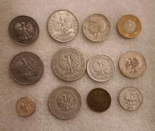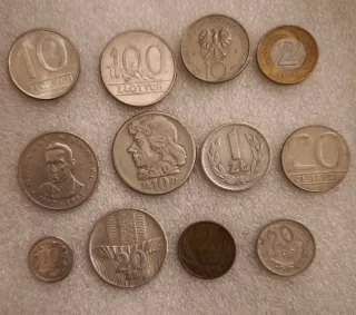 Lotto composto da 12 monete della Polonia. Le monete presentano diverse denominazioni e disegni. - 10 Zlotych - 100 Zlotych - 2 Zlote - 10 Zlotych (con ritratto) - 1 Zloty - 20 Zlotych - 10 Groszy - 2 Zlotych (moneta bimetallica) - 20 Groszy