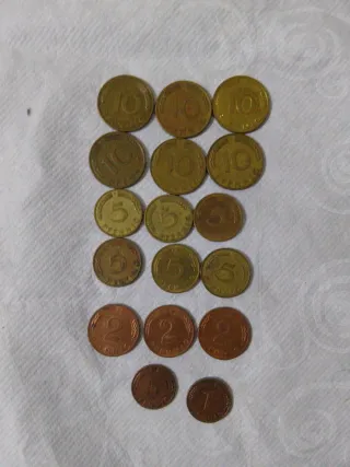 Raccolta di monete di diversi valori ed epoche. - Monete da 10 Pfennig. - Monete da 5 Pfennig. - Monete da 2 Pfennig. - Monete da 1 Pfennig.