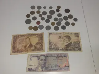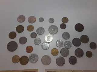 Vendo una collezione di 35 monete di diversi paesi: Inghilterra, Francia, Germania, USA, Brasile, Svezia, Belgio, Danimarca, Cuba, Italia, Portogallo, Euskadi, Svizzera, Venezuela. In regalo 2 banconote da 100 pesetas e una banconota delle Filippine in cattive condizioni.