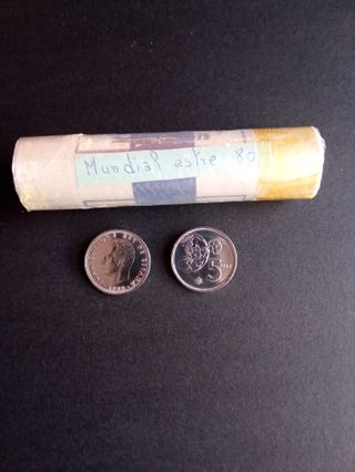 VENDO: Lotto n. 5 Cartuccia da 50 monete da 5 pesetas del Mondiale 1982 nuove non circolate della FNMT 1980*81 (Faccio lotti per spedizioni più economiche)