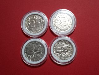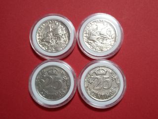 4 monete da 25 centesimi "ALFONSO XIII" del 1925
