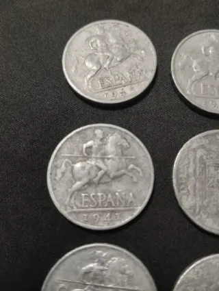 Set di 9 monete antiche spagnole. - Monete commemorative. - Design di cavaliere a cavallo. - Stemma di Spagna. - Anni: 1941 e 1953.