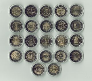 Lotto di 22 monete da 2 euro non circolanti, in capsula