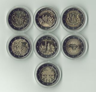 Lotto di 7 monete da 2 euro lituane non circolanti