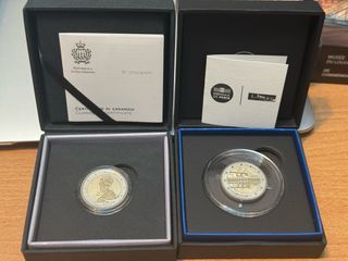 In vendita due monete commemorative da 12 euro, coniate in argento. Ogni moneta è protetta individualmente, senza essere aperta. - Moneta 1: Anno Internazionale del Pianeta Terra, Anno 2008. - Moneta 2: Presidenza dell'Unione Europea Spagna, Anno 2002.
