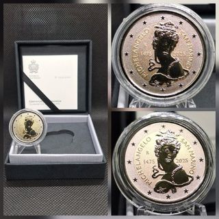 Lot di due monete da 2 euro. Prova inversa - Moneta di San Marino 2025 Prova inversa - Moneta di Francia, Monnaie de Paris, commemorativa del Museo del Louvre. Prova inversa