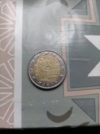 Moneta commemorativa da 2 euro di Brema, Germania, dell'anno 2010. Presenta il design della Cattedrale di Brema e un bordo con le stelle dell'Unione Europea. Coniata nel 2010.