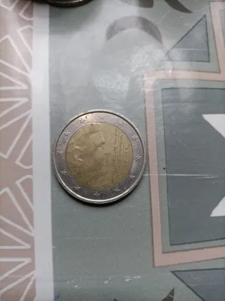 Moneta da 2 euro dei Paesi Bassi in circolazione dell'anno 2014. Moneta circolata ma in buone condizioni. Prezzo 2,50 euro. Spedizioni minime di sei monete.