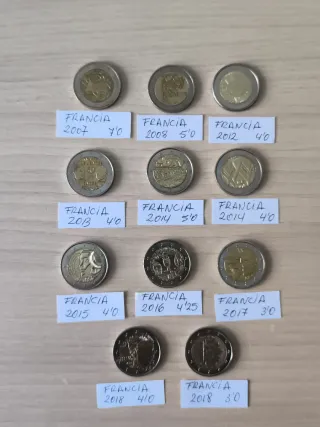 Set di 11 monete da 2 euro della Francia, commemorative di diversi anni. In confezione. Altre monete nel mio profilo. Si fanno lotti e spedizioni. - Francia 2007 - Francia 2008 - Francia 2012 - Francia 2013 - Francia 2014 - Francia 2014 - Francia 2015 - Francia 2016 - Francia 2017 - Francia 2018 - Francia 2018