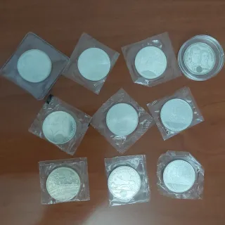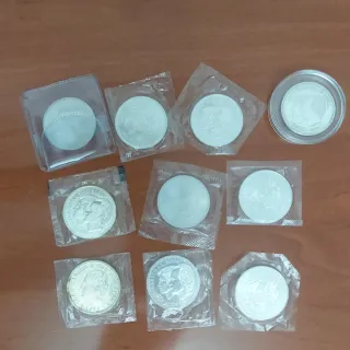Lotto di 10 monete commemorative in argento 925: - 8 monete da 12 euro. - 2 monete da 2000 pesetas. Possibile consegna a mano a Barcellona e dintorni.