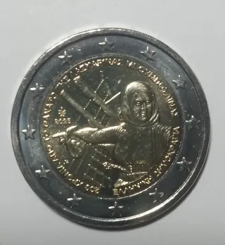 Moneta da 2 Euro. - Dritto: Ritratto di una figura storica. - Rovescio: Valore nominale 2 EURO e mappa dell'Europa.