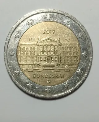 Moneta commemorativa da 2 euro della Germania, coniata nel 2019. Conio F - Raffigura il Bundesrat. - Anno di emissione: 2019. - Paese: Germania (D).