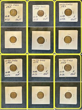 Collezione di 18 vecchie monete americane. Alcuni mostrano segni di usura nel tempo. - Include 18 monete di anni diversi. - Monete da un centesimo. Un centesimo. Un centesimo - Ideale per i collezionisti.