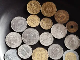 Set di cinquantatré monete di diverse epoche e origini. Varietà di design e metalli. Pezzi da collezione.