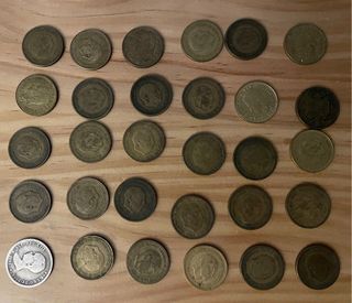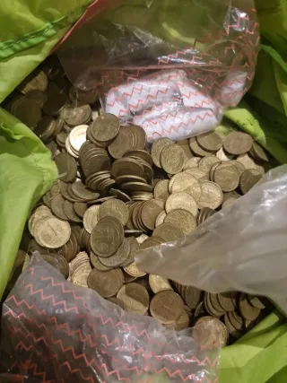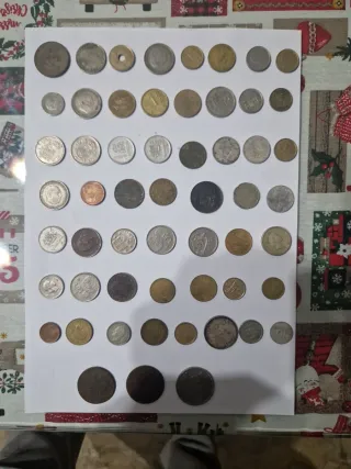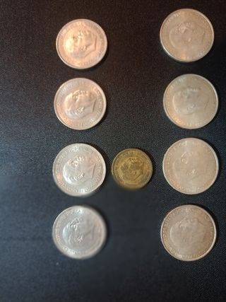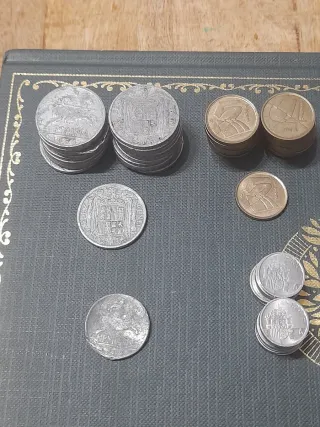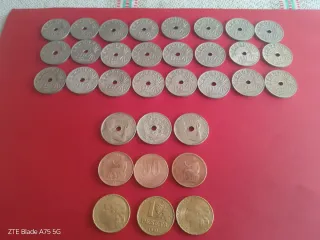 130 x 25ptas 1957 29 x 50ptas 1957 30 x 50ptas 1975 19 x 50ptas 1980 9 x 50ptas 1982 18 x 50ptas 1983 Ci sono un sacco di monete da 25 ptas di Re Juan Carlos ma non sono contate. Accetto offerte.
