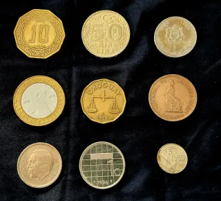 Set di 20 monete di diversi paesi ed epoche. Ogni moneta ha un design unico e dettagliato. Design vari con motivi storici e culturali. Materiali diversi come metallo e leghe. Alcune monete presentano iscrizioni in diverse lingue.