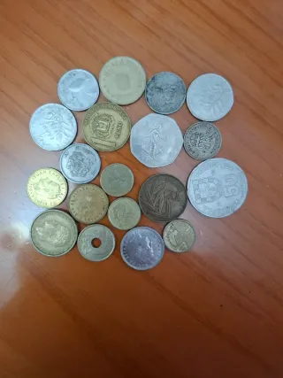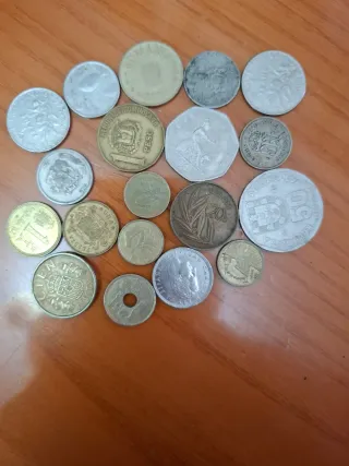 In vendita un lotto di monete antiche, molte delle quali in pesetas. Varietà di monete. Ideale per collezionisti. Si accettano offerte