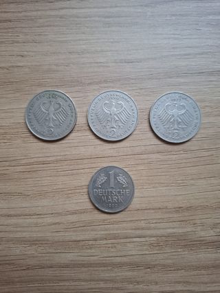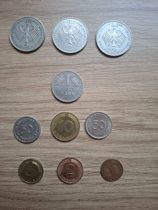 Lotto di 14 monete antiche della Germania, corrispondenti al periodo della Germania divisa, provenienti da collezione privata. Include: 1- Repubblica Federale di Germania (RFT / Germania Ovest). Coniate tra il 1956 e il 1991: 1 Pfennig (1982), 2 Pfennig (1991), 5 Pfennig (1990), 10 Pfennig (1990), 50 Pfennig (1989), 1 Marco (1990), 2 Marco (1972, 1977 e 1990). 2- Repubblica Democratica Tedesca (RDT / Germania Est): 1 Pfennig (1989), 5 Pfennig (1988), 10 Pfennig (1989), 50 Pfennig (1971). Monete autentiche, circolate e ben conservate in cartellini per anni.