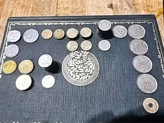 Set di monete israeliane. - Monete con diversi design. - Include monete di diverse epoche e materiali. Numismatica, collezione, antichità, lotto, monete antiche, collezionismo.