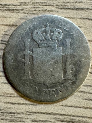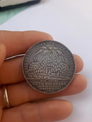 Antiche monete in argento con lo stemma reale e due figure. - Registrazione: D.G. CAROLUS DVX BRUNSVIG. - Anno: 1747. Non so se è autentico Senti le offerte