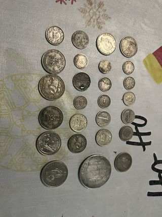Lotto di diciotto monete spagnole d'argento. - 9 da due pesetas. - 9 da una peseta. 130,7 grammi in argento, più valore numismatico. Si trovano in buono stato generale. Consegna a mano a Madrid. Possibilità di spedizione certificata. Prezzo non negoziabile. Assoluta serietà.