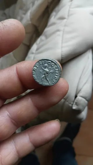 Vecchia moneta d'argento. Denario dupondio sesterzio come monete antiche - Denario di Eliogabalo. Busto piccolo.