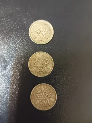 Set di tre monete d'argento. - Una moneta del 1933 con design di quercia. - Una moneta del 1935 con design di quercia. - Una moneta del 1938 con design di croce.