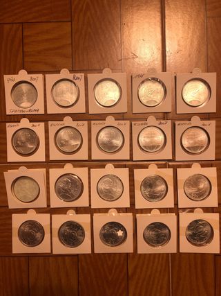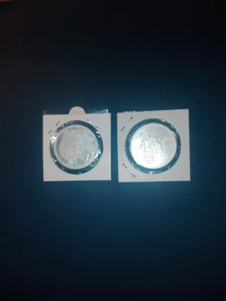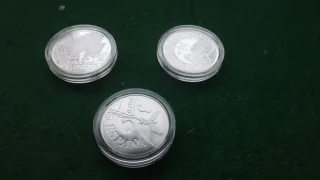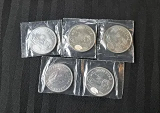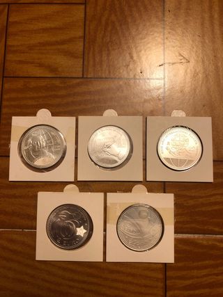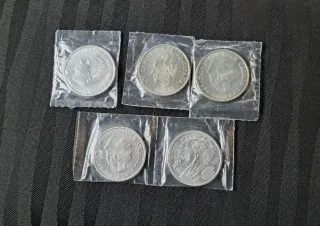 Set di cinque monete d'argento commemorative. Design dettagliato su ogni moneta. Finitura brillante. Ideali per collezionisti. Valore: 12€. Disponibili altre unità! Non circolanti! Originali Vintage Numismatica