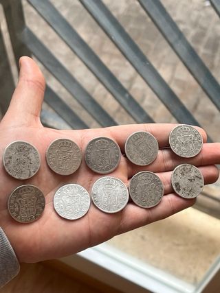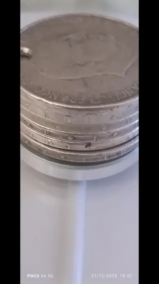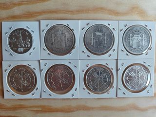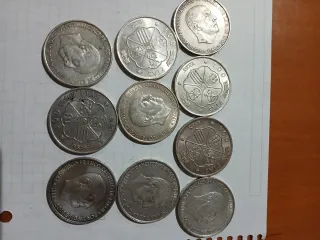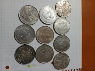 SPOT -5% Include: - 2000 Pesetas 1997 - 5 Pesetas 1891 - 5 Pesetas 1898 - 5 Pesetas 1878 - 100 Pesetas 1966 *68 - 100 Pesetas 1966 *67 - 100 Pesetas 1966 *67 - 100 Pesetas 1966 *66 Lo stato è quello visibile nelle foto. In totale ci sono circa 145 grammi di argento puro secondo il catalogo. Il prezzo dell'argento è stato ridotto del 5% al giorno d'oggi, l'annuncio verrà aggiornato.