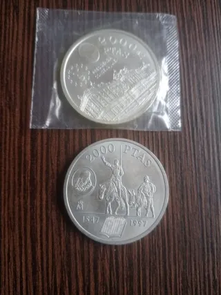 In vendita due monete d'argento da 2000 peseta dell'anno 1994. - Materiale: Argento. - Valore nominale: 2000 peseta. - Anno di conio: 1994.