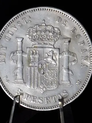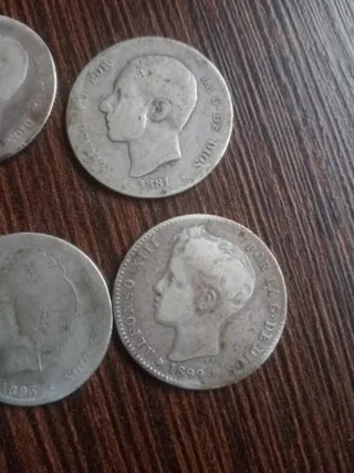 - Set di due monete di Alfonso XIII, coniate negli anni 1890 e 1891. Moneta da 5 pesetas di Alfonso XIII, del 1890. La moneta è in argento 900 millesimi. - Il design del busto di Alfonso XIII è noto come il 'pelón' o bambino. - Coniata a Madrid. - Peso: 24,89 g. - Stato: MBC, numeri leggibili su entrambe le stelle, speciale per collezionisti. - Moneta in argento spagnolo da 5 pesetas di Alfonso XIII del 1891 per la G. de Dios. - Dritto: Busto di Alfonso XIII da bambino. - Rovescio: Mostra lo Stemma delle Armi. - Peso: 24,90 g. - Stato: MBC. Molto buona conservazione, numeri perfettamente visibili.