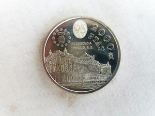 Moneta commemorativa da 2000 pesetas dell'anno 1995. - Design della Presidenza del Consiglio dell'UE. - Finitura in argento.