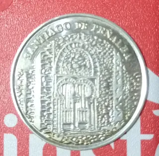 Moneta d'argento con design dettagliato. - Incisione di architettura. - Iscrizione SANTIAGO DE PEÑALBA.