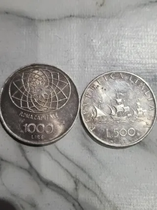 Set n. 4 monete da 500 lire "Caravelle" della Repubblica Italiana in argento (n.3 del 1959 e n.1 del 1958). Materiale e peso: Sono realizzate in argento 835/1000 e pesano 11 grammi. Design del rovescio: Il lato visibile raffigura tre caravelle che navigano verso destra, con la scritta "REPUBBLICA ITALIANA" in alto e il valore "L.500" con il segno di zecca "R" in basso. Circolazione: Furono coniate per la circolazione dal 1958 al 1967, e successivamente solo per i collezionisti.