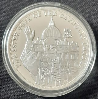 medaglia commemorativa in argento dedicata al 267° Papa della Chiesa Cattolica. Argento 400 ottima qualità - Raffigurazione del Papa con la Basilica di San Pietro sullo sfondo. - Anno 1180-2025 inciso sulla moneta.