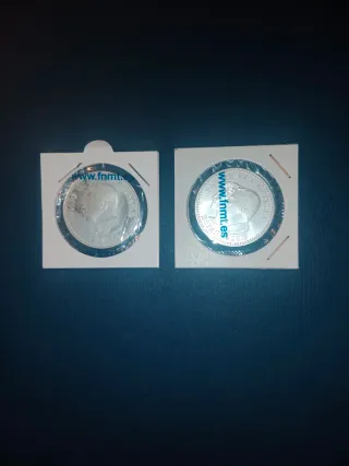 Set di due monete d'argento del valore di 20 euro ciascuna. Commemorano il centenario di Clara Campoamor e il Mondiale di Calcio. Materiale: Argento. Valore nominale: 20€. Tema: Centenario Clara Campoamor e Mondiale di Calcio.