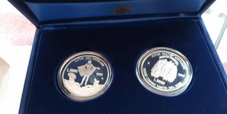 Monete commemorative in argento, con dettagli finemente incisi. - Design unico e dettagliato. - Materiale: Argento.