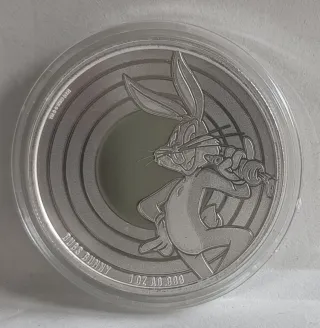 Set di 4 monete d'argento.999 da 1 oncia di Samoa con tema Looney Tunes. Include: - Bugs Bunny 2022 - Daffy Duck 2022 - Road Runner 2023 - Tweety (Piolin) 2023 Consegna a mano nella zona di Barcellona e spedizioni disponibili. È possibile fare lotti con più once dai miei altri annunci.