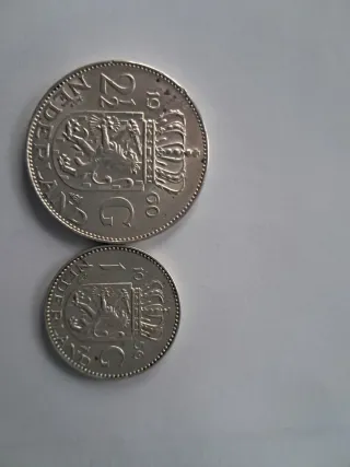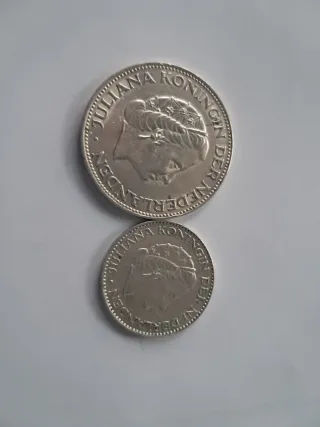 Due monete olandesi in argento regina Juliana 2,5 gulden 1960 1 gulden 1956