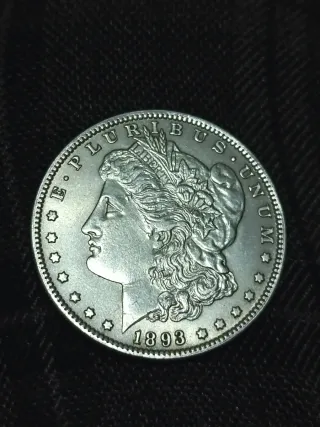 Moneta in argento Dollaro Morgan del 1893, coniata a San Francisco. - Design di Lady Liberty. - Iscrizione E PLURIBUS UNUM e LIBERTY. - Anno di coniazione: 1893. - Marca di zecca: S (San Francisco). Aspetto offerte